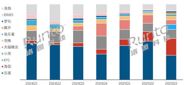 当前行业处于快速增长期,百度凭借先发优势占据头部位置,海信增长迅猛,第三季度线上销量份额22.2%,较去年同期大幅提升17.5个百分点;
