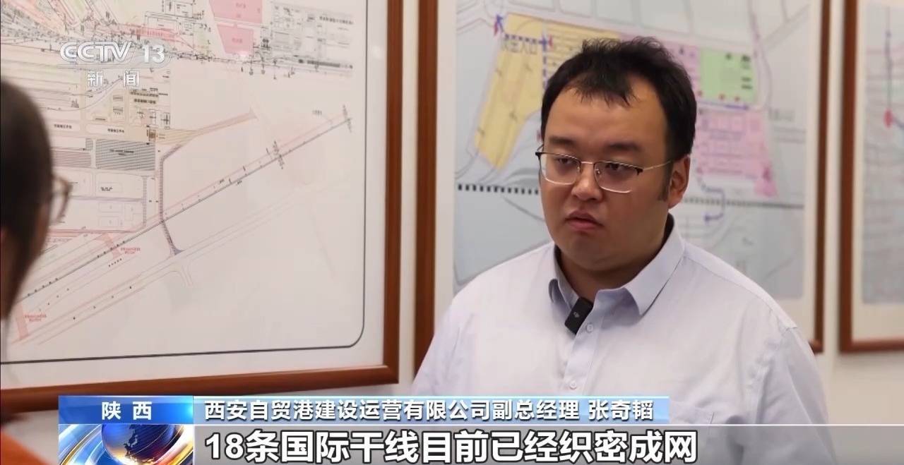 西安自贸港建设运营有限公司副总经理 张奇韬:时效更短,运输费用更加节省,能够组合出新的一些多式联运的方案。这五年,我们在欧亚大陆板块的18条国际干线目前已经织密成网。